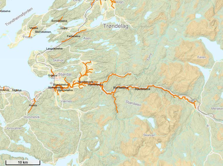 Stjørdalselva er nasjonalt laksevassdrag.