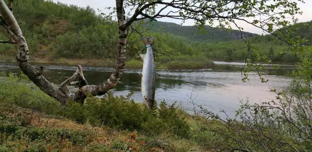 Den sølvblanke og nydelige laksen som fikk æren av å sparke i gang nok en spennende laksesesong her i Lakselva!
