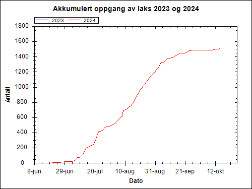 Ved å klikke på linkene under, får ein oversikt over kvar enkelt laks som har passert