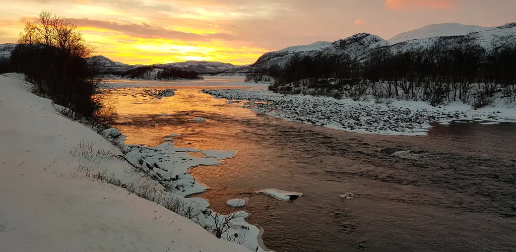 Mørketida er nå over oss her i Lakselv, og når værgudene spiller på lag med oss, er fargespillet på himmelen i starten av mørketida helt fantastisk. Nå har jeg ikke helt klart å gjenskape dette med mitt mobilkamera, men et visst inntrykk får man av fargene.