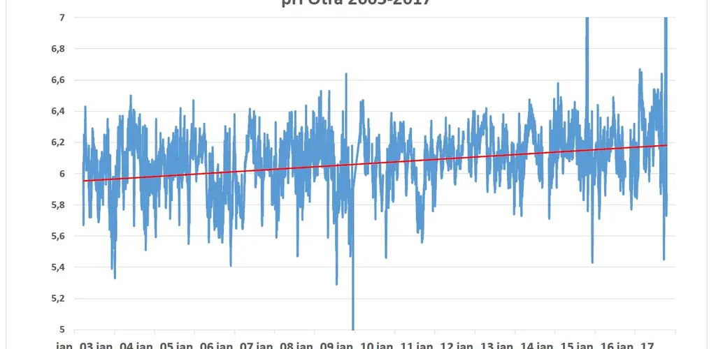 Det ser ut til å ha vært en positiv utvikling på pH, men det er svigninger. Spesielt utsatt er det i sidebekker ved regn om vinteren. Da kan pH falle til under 5. Otra Laxefiskerlag har tatt, og tar vannprøver, f.eks den 24/1 2018 da vi hadde regn og stor snøsmelting fra sidebekker, men generellt også fra lavereliggende områder som dernerer til Otra.