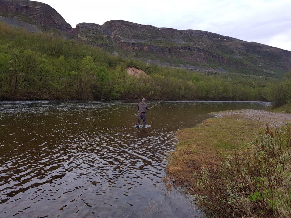 Nede i sone 1, så jeg det stod en kar og fisket oppe i Bjørnekulpen, og når jeg kom opp til han forstod jeg at han hadde fisk på kroken. Med tanke på tida på året, tenkte vi begge at det måtte være en vinterstøing han hadde fått på kroken, men når vi fikk den inn, så vi at det ikke var det. Det var derimot ingen typisk feit Lakselvalaks, men vi innså at sesongens første blanklaks (selv om det diskuteres). Laksen ble målt til 87 centimeter og 6,2 kilo. Til info har vinterstøingene vi har merket nå før sesongen vært på +/- 100 centimeter og i samme vektsjikte.