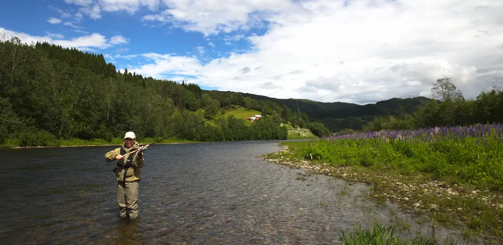 Været var så som så, med delvis kraftige regnbyger, men med vadebuksa på cap på er det bare å stå i elva.
