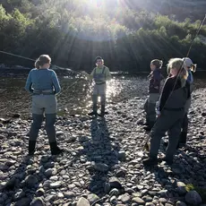 Fluefiske,grillet laks på bål, båtfiske, fluebinding, fiskekonkurranse, foredrag, damefiske og ungdomsfiske. Villaksens dag med variasjon!